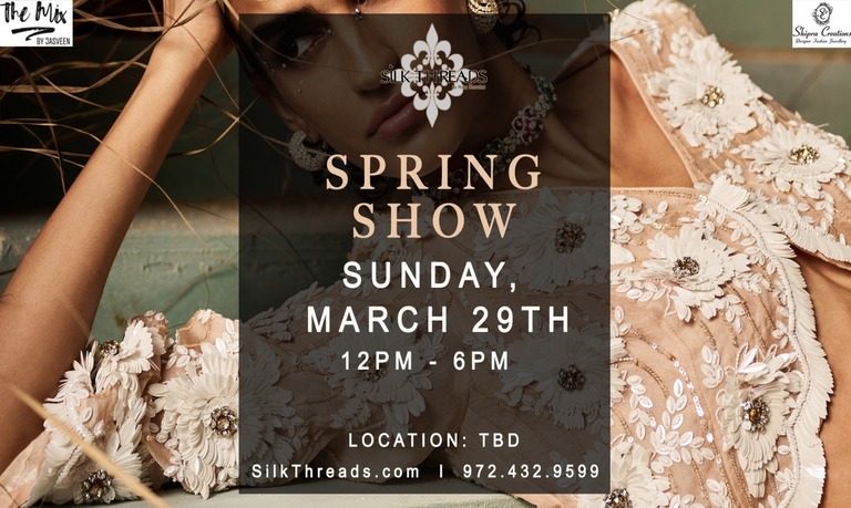 The Silk Threads Annual Spring Show celebrates craftsmanship, color, and culture. The event will include a beautiful collection of bridal dresses, lehengas, custom dresses, Indian fashions, and menswear and all of them are thoughtfully curated for the new season. From rich silk fabrics to intricate embroidery and modern silhouettes, every piece showcases elegance and attention to detail.